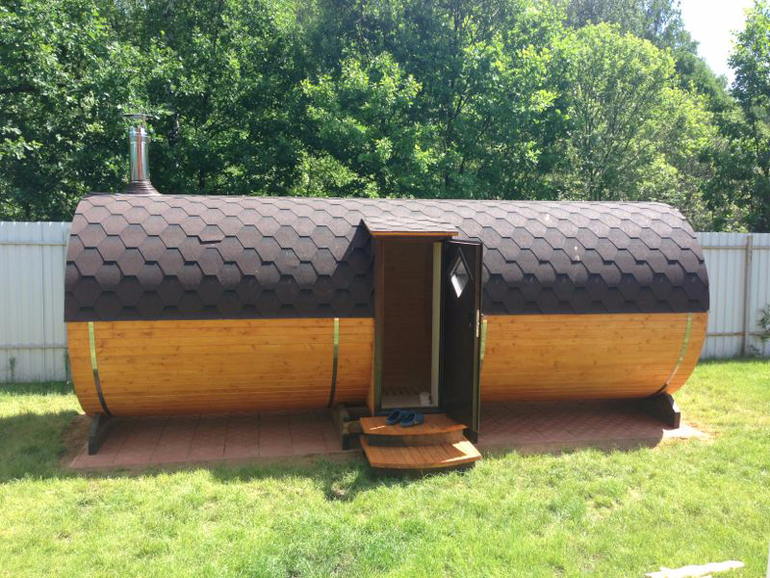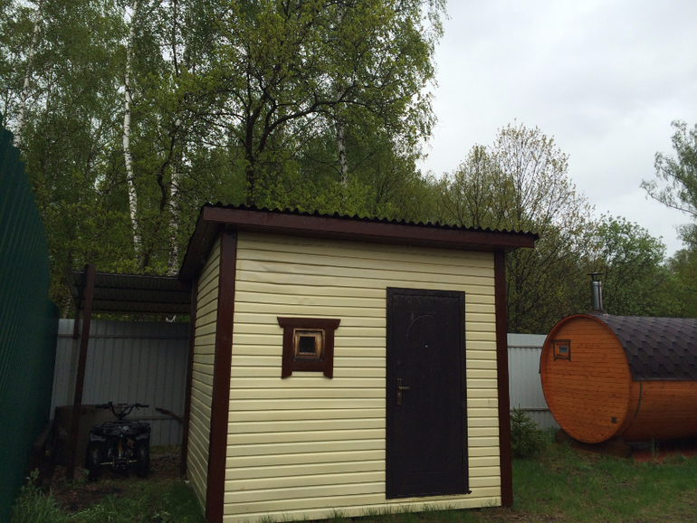 На участке имеется крытый холодный гараж на 2 авто с автоматическими воротами, 6 метровая дровяная баня-бочка, запираемый хоз-блок, навес для дров.