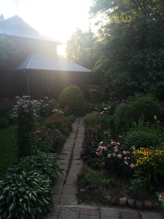 Наш милый небольшой дом, дорожка от летней кухни/бани, вокруг цветыыыы: