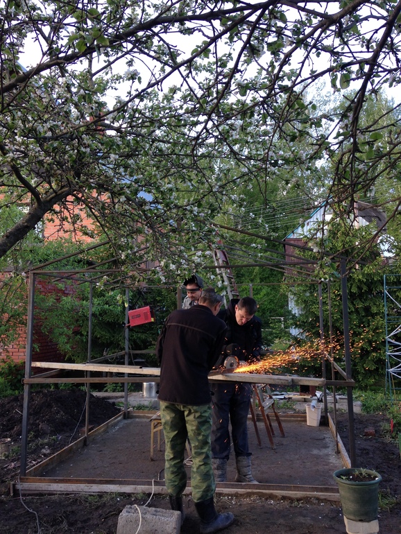 Сварили быстро)) Натянули поверх опять же баннер,чтоб на голову не лило и можно было поперечены сделать.