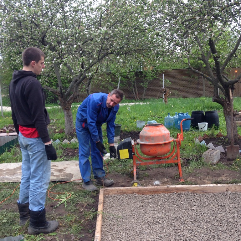 Никакой спортзал не нужен,мышцы все работают))Казалось так все просто... что там трудного-то?Выкопал и все))Угу)))Ок,ладно,всю землю выгребли на глубину одного штыка лопаты.( Что теперь с этой землей делать хз)) Стали засыпать подушку из песка и щебня.Опачки,а этого-то у нас мало,не хватит для смеси бетонной)) Глубоко очень выкопали,толстый слой подушки пришлось делать.