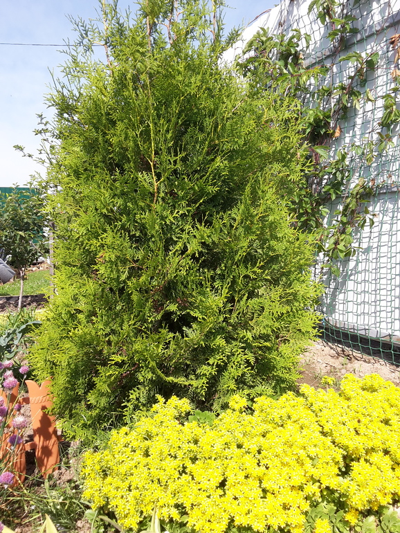 Туя очень хорошо вписалась с этими желтыми почвопокровными цветочками))