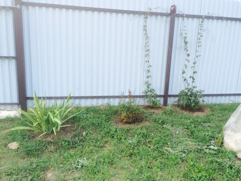 Ну а это сам он - огород так сказать. Забор рабица и за забором соседский душ и туалет, что очень не красит картину