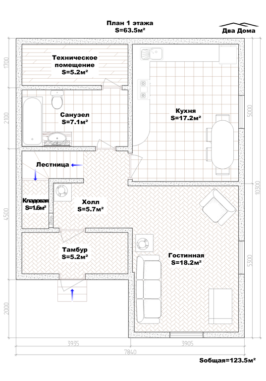 4 больших комнаты и огромная кухня, 2 санузла, большие техническое помещение и тамбур, кладовая.