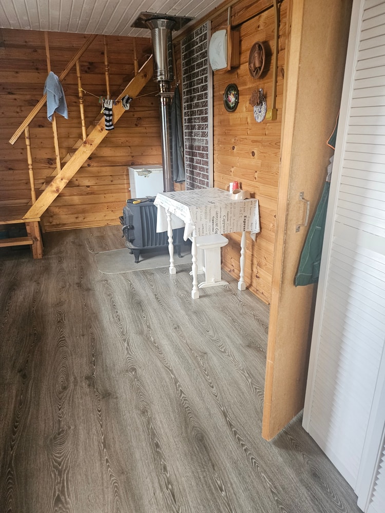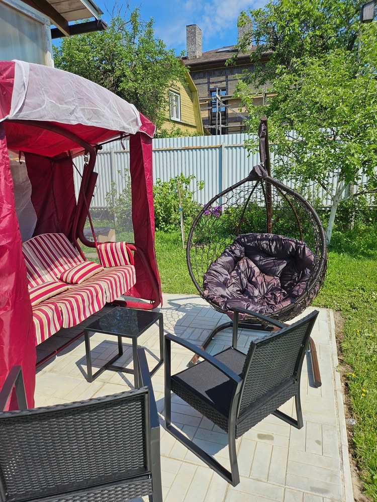 Дом из бруса,2 этажа 70 кв с новой печкой. Первый этаж - большая закрытая терраса, большая кухня и комната- кровать и диван, второй этаж большая комната с кондиционером- 2 кровати, шкаф и стенка,отдельно стоящее торфяной туалет и душ. Полностью обставлен, 2 телевизора, на 2 этаже смарт тв новый, холодильник и морозильная камера. К дому пристроен , с отдельным входом помещение для хранения, там есть откидная кровать из дерева.Везде холодная и горячая вода. На улице качели, капля и столик с креслами для кофе. Вода из колодца, проверена. Косилка, триммер, сучкорез, дорогой аппарат для опрыскивания, куча удочек, дорогой эхолот, для рыбалки много всякого. 2 балона для газа. Есть и электрическая плитка. Велосипед тоже есть. Бассейн большой, если хотите поставить, тоже есть.