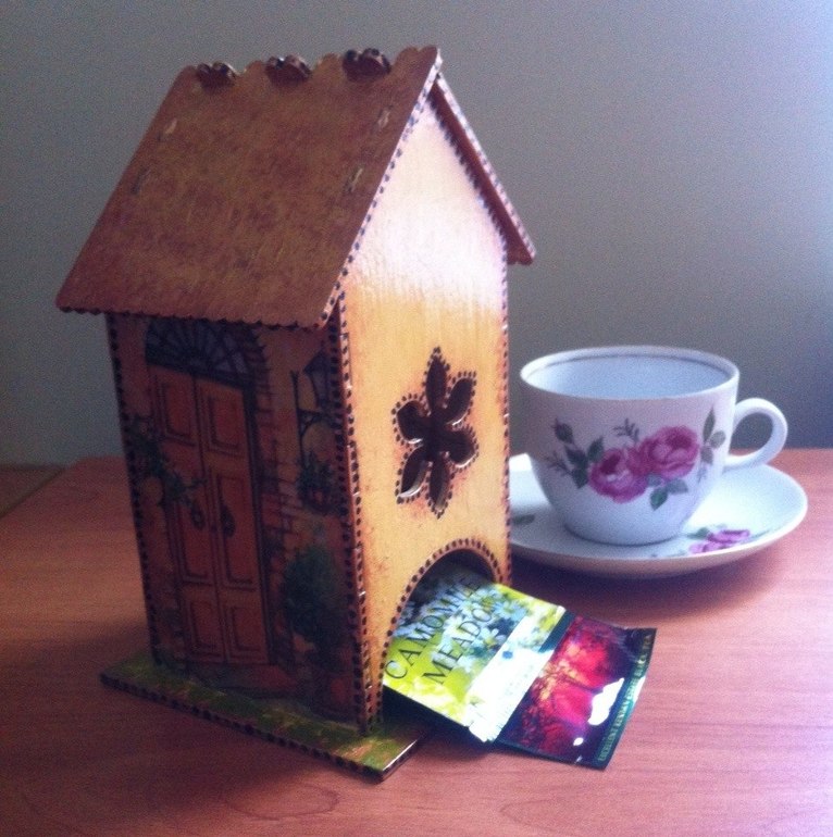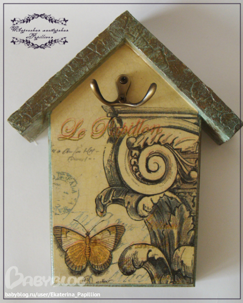 МДФ, грунт, салфетка, кракелюр водный мордан+гуммиарабик, лак Кива п/мат, фацетный лак на крыше, акрил