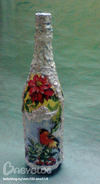 Как увидела бутылочку "Терра" Ссылка с тех пор хотела ее сделать. Вот и подвернулся случай - у моего папы день рождения и я решила оформить бутылочку коньяка, а когда моя подруга увидела что я делаю попросила и ее папе сделать такую (у наших отцов дни рождения идут друг за другом: у нее - 15.09, а у моего - 16.09). Накосячила я с лаком((( но тут уже не исправить шкуркой, на будущее учту. Мне понравилось их делать.