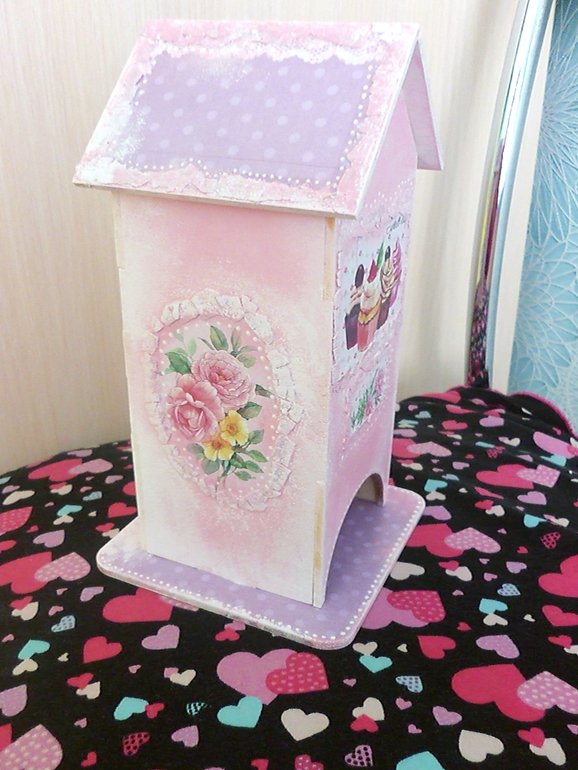 Была небольшая баночка для ватных палочек, прозрачная и скучная... А получилась милая шкатулочка...