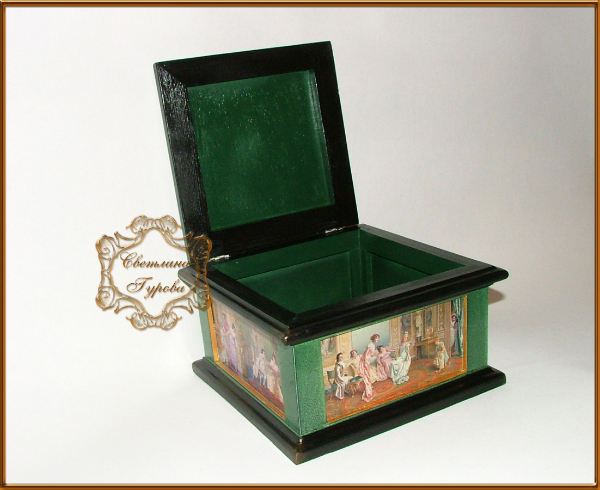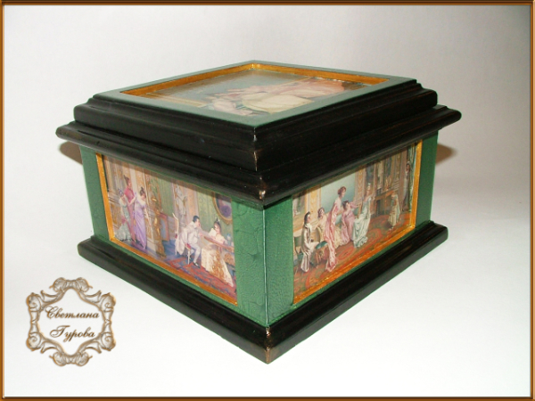 Шкатулки, коробкиЯ добралась до фотоаппарата и теперь могу показать свою последнюю (и почти единственную за несколько месяцев) декупажную работу. (больше фото можно посмотреть на моем сайте...)