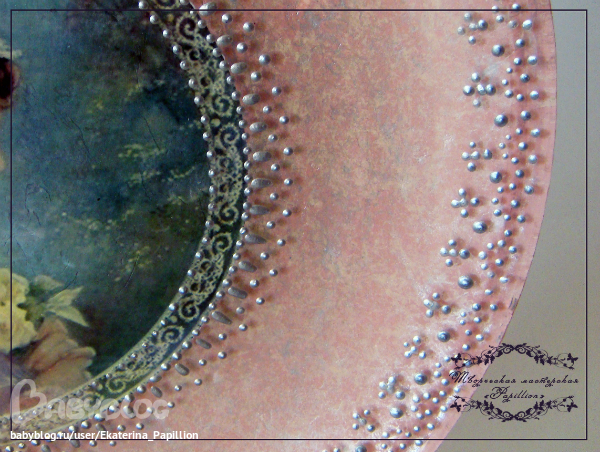 Стеклянная тарелка Икея (остатки роскоши, больше их не продают), распечатка, грунт, акриловые краски Олки (перламутр, серебро, телесная), контур для стекла Декола