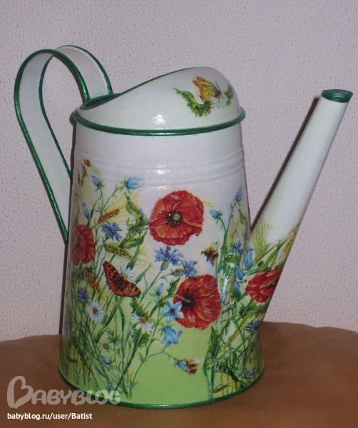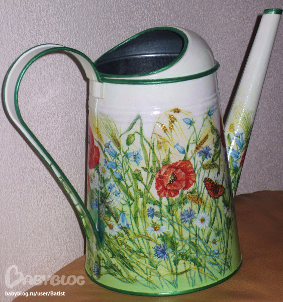 Материалы: лейка, салфетка, акрил, лак, глитеры.дорисовка