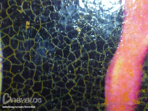 Ждала 40 мин, а трещинки ни уменьшались, но и не увеличивались. Короче, затерла я это дело маслянной краской, хотела через 30 минут смыть, но она стала и в трещинках смываться. Ладно, оставила на пару часов, но потом еле смыла!!! Пришлась сильно тереть чтобы как-то картинку видно стало.