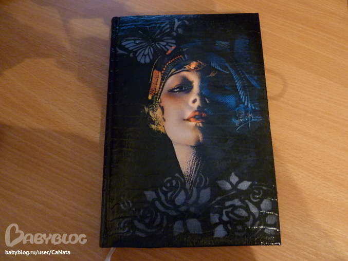 Спасибо, Светлана! Материалы: ежедневник, распечатка, покрытая тремя слоями глянцевого лака фирмы "Тиккурила", трафареты, акриловая краска(наносилась на трафарет губкой), и финишный - стекловидный лак.