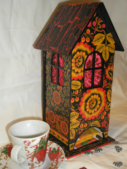 Пример крыша домика одношаговый кракелюр. 1. Слой краски (какими вы хотите видеть трещинки). тут он красный2. Слой кракелюрного лака 3. Основной слой (тут он черный) При нанесении второго слоя краски на лак старайтесь дважды не проходить кисточкой уже по наложенной краске. Иначе иногда трещинки образуются достаточно быстро и вы второй раз пройдясь краской закрасите их. Я обычно чуть чуть развожу краску но не сильно чтобы она хорошо ложилсь, но в тоже время не стала прозрачной (сильно водянистой)