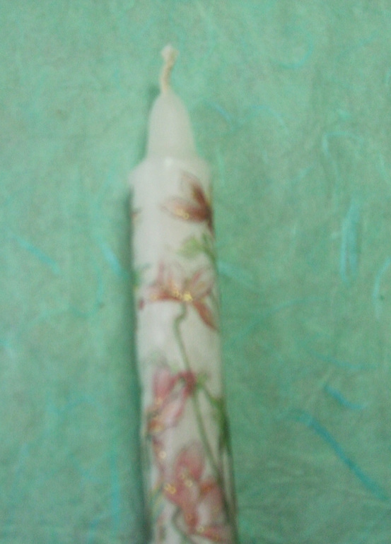 Это уже урок №3- Декупаж на доске.Первый был- на свече, но я не нашла белой толстенькой и низкой, сделала на такой, но украсила золотым контуром...