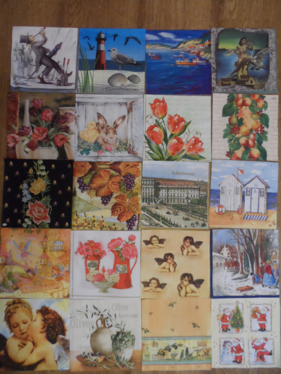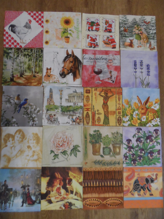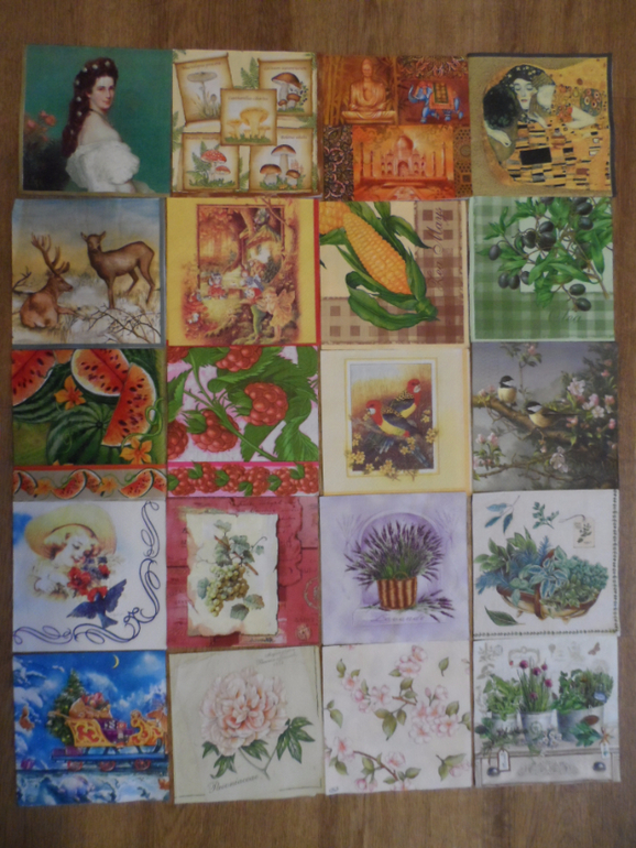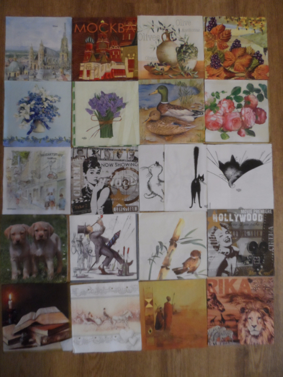 Здравствуйте! Когда я увлекалась декупажем собрала большую коллекцию салфеток. Сейчас у меня другое увлечение, а салфетки лежат и занимают место в моей хомячей норке. Продаю только наборами по 40 штук. Любой из наборов стоит 300 рублей с почтой!!!