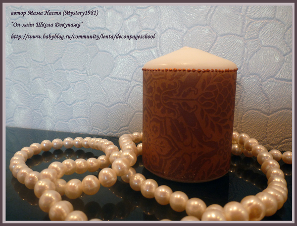 посмотреть еще Мк по декупажу свечей тут http://www.babyblog.ru/community/post/decoupageschool/1697628