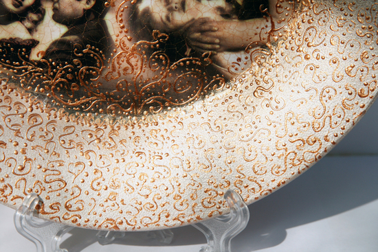 - далее прочпокала смесью акриловых красок окантовочку тарелки