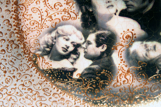 - после просушки картинку покрыла 2-х шаговым кракле, затёрла бронзовой пудрой, после просушки смыла и покрыла акриловым лаком
