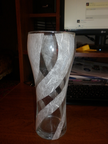 Надо края клеить чуть-чуть друг на друга, будет лучше. С вазой идея тоже хорошая, согласна с Юлей, что стекло дучше не трогать, а обозначить только края рисовой бумаги.