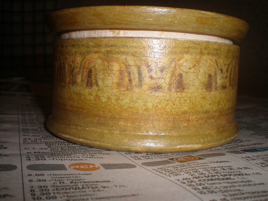 Фотки маленькие, детали не так просматриваются, там много слоев разных оттенков и при шкурении потертости многоцветные получились... довольна, что кракелюр получился наконец-то...смотри дно