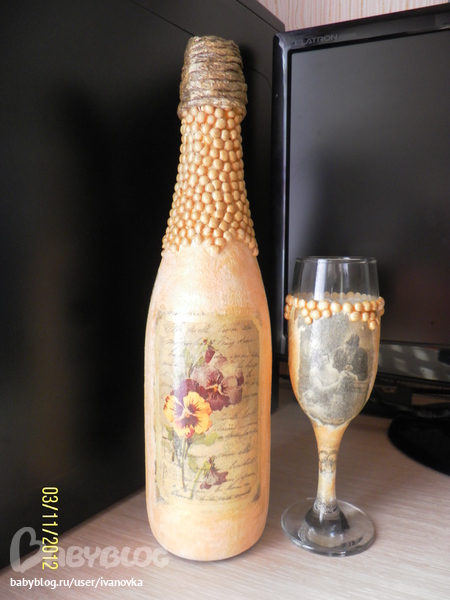 3. Решила украсить горлышко, приклеила с помощью клея пва половинки гороха