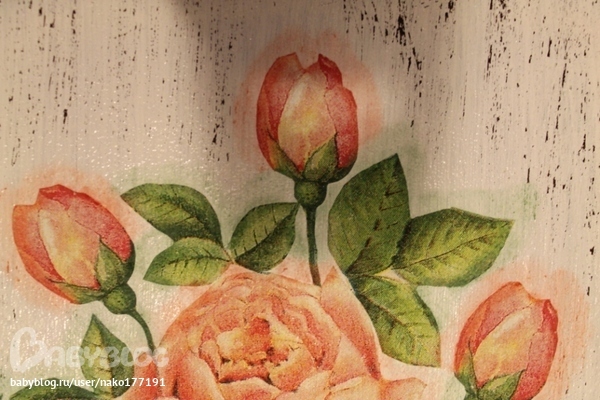 да, хророшо, но цветы очень новые, давай их приглушим) под цветами жаль, что нет потертостей, смотрелось бы как облезающая роспись) а то роспись неподвластная времени осталась) так не бывает)