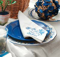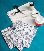С помощью декупажа можно декорировать любые тканые изделия – от салфеток до занавесок. Если вы соберетесь их постирать – делайте это вручную и очень нежно. Для украшения керамических или деревянных поверхностей используется в основном тот же прием. Разница - в обработке поверхности до и после нанесения рисунка. Деревянное изделие перед украшением нужно ошкурить наждачной бумагой № 0 и обработать грунтовкой, а после нанесения узора - покрыть акриловым лаком. Керамическое изделие через три дня после украшения нужно поставить в холодную духовку, разогреть ее до 150 градусов, прокалить изделие в течение 30 минут, выключить духовку и оставить изделие в духовке до полного остывания.