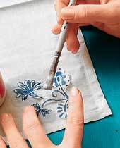 Наложите вырезанный мотив на ткань и покройте несколькими слоями текстильного клея, который можно купить в художественных салонах или универсальных строительных магазинах, например в OBI. Салфетка и ткань должны полностью пропитаться клеем, а рисунок надо тщательно разгладить кистью. После того как ткань полностью высохнет, ее можно аккуратно прогладить не очень горячим утюгом через тряпочку.