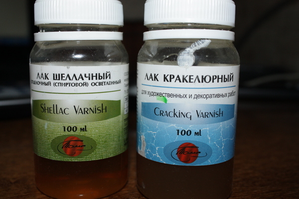 10. Лак шеллачный спиртовой + лак кракелюрный (Таир).