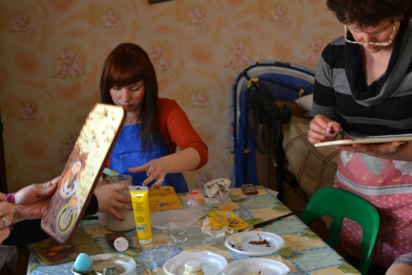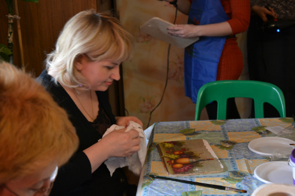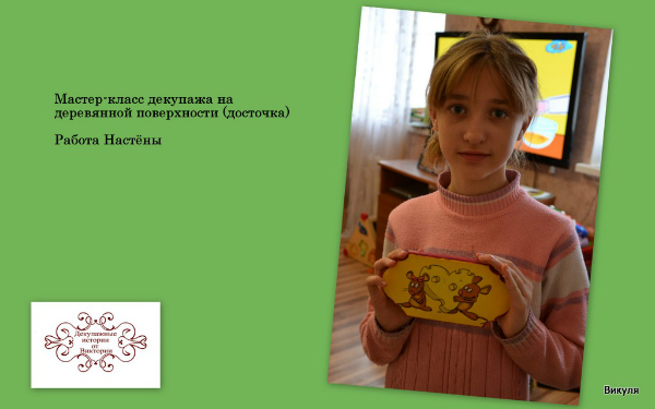 Первый :) 3, 5 часа пролетели очень незаметно. Уже напросились на 7 апреля, так что продолжение следует... К приезду Наташи моя задача "заразить" их декупажем.