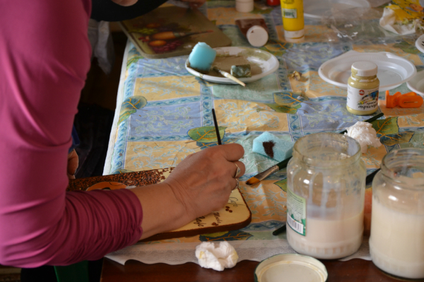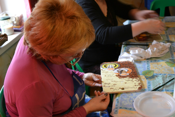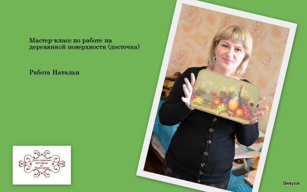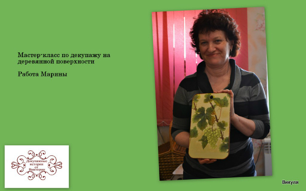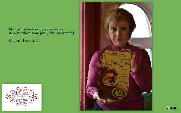 Это был МК для тех, кто никогда вообще ничего не делал. Еще есть 2 "продвинутых", они потом присоединяться. Так что моя задача собрать 2 команды :)))) Интересно было, когда я вначале рассказывала, одна сказала, что я не смогу ничего сделать, а когда сделала свою кофейнуюдоску, аж прослезилась, так была тронута своей работой.
