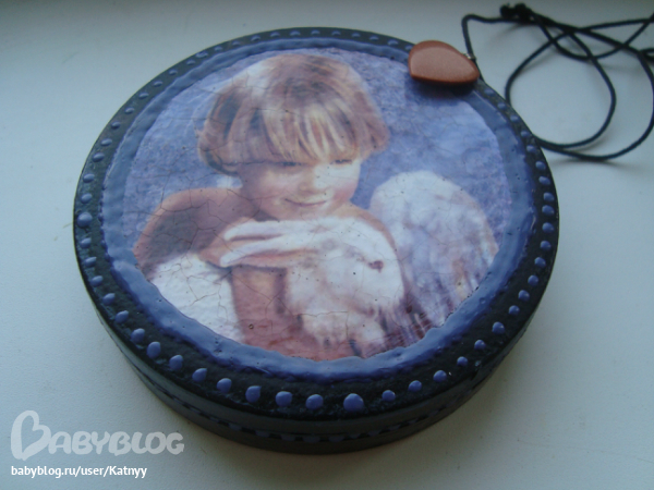 загрунтовала акриловым грунтом: на крышке белым, все остальное и края крышки черным. Распечатку истончила, приклеила. Слелала контуры. Нанесла по инструкции кракелюр. Затерла тенями. (смыла всё, было много пузырьков, повторила...5 раз...)