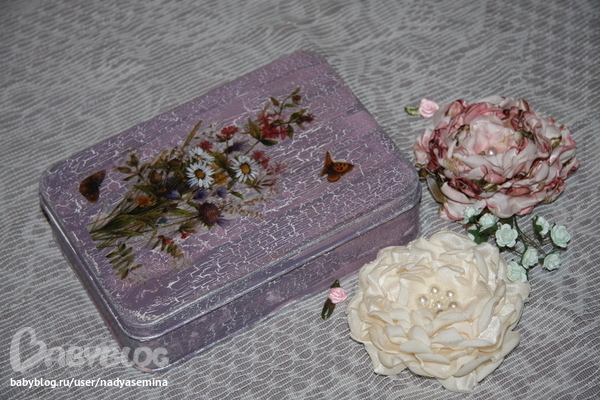 Надюш, ты перегрелась!? Кракелюр очень хороший получился, надо просто работу закончить. Согалсна с Наташей, что для романтики кружево и будет нежная старенькая коробка!!!
