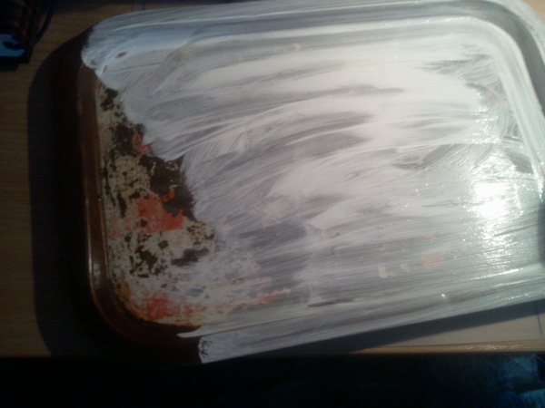 поднос служил долго..пришел в негодность, весь покрылся ржавчиной,краска облезла, выхватила из рук можно сказать))еще 5 минут и ушел бы на помойку))