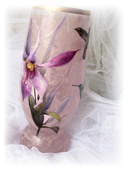 На самом деле прикупила тут шелковую бумагу и решила ее попробовать, что и как) До этого пользовалась рисовой Esprimo. Ну мне оч понравилось, шелковая бумажка более тонкая и податливая. Цвет взяла лавандовый. И вот получилась моя вазочка.