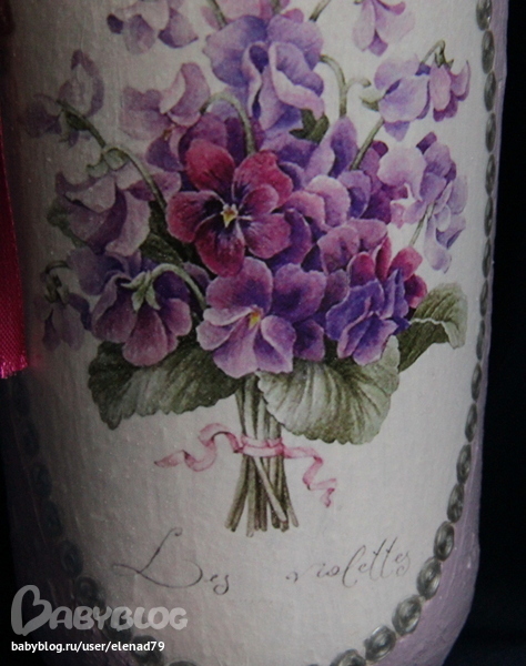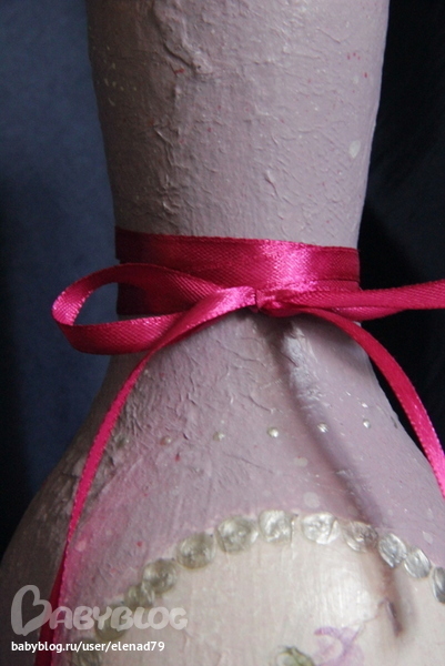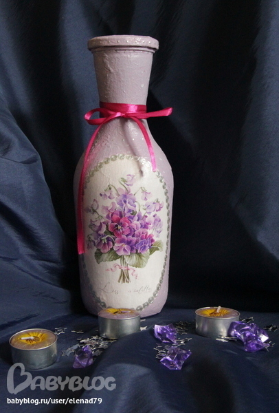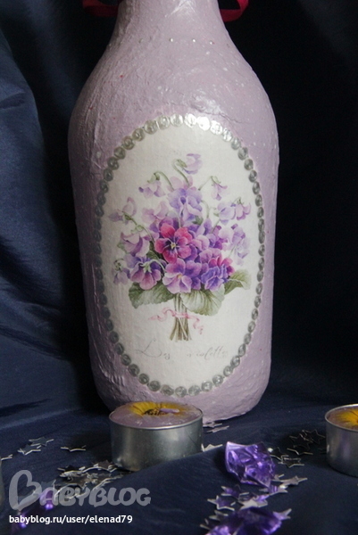 4. Приклеила мотивы (в одной стороны он большой, с другой поменьше) - на фото выставила обе стороны бутылки
