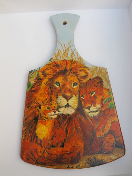 Наши шедеврыДосочку начала делать еще в июне, вместо подготовки к экзаменам. Первый раз пробовала приклеить салфетку методом файла, в итоге ничего толкового не получилось - очень много разрывов и складочек. Поэтому я прибегла к своему любимому способу - раскрасила сверху всю картинку заново, тоненькой кисточкой, имитируя рисунок. Немного ошиблась с цветом - львы получились слишком рыжие