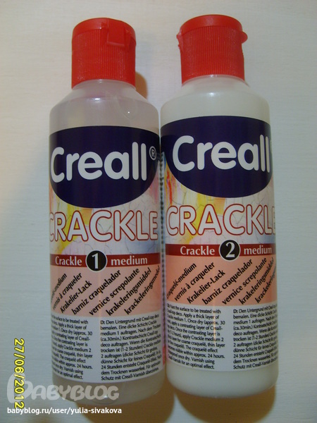 И начались у меня с ним "опыты". По рассказам бывалых декупажниц добиться от него тонких и нежных трещинок очень тяжело.