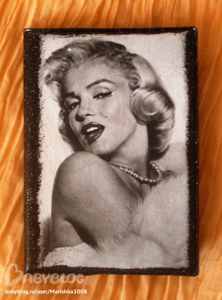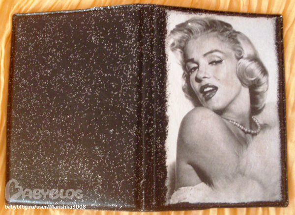 делала из распечатки, скотчем расслаивала. обложку прошкурила, обезжирила, загрунтовала. приклеела картинку методом файла. покрыла переднюю часть матовым лаком, а заднюю глянцевым с блестками на 2 раза. другого, к сожалению нет((( весь город объездила - не нашла просто глянцевого. на фото как будто какие-то разводы на лице. в жизни этого нет.