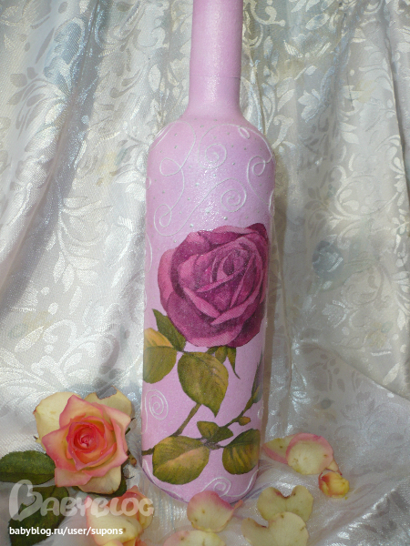 5. Приклеила мотив на бутылочку при помощи клей-лака для декупажа.