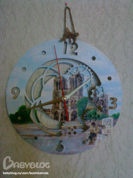 а часы вот такие сделала, тож походу не очень удачно мотив подобрала, да и заготовка только такая была... делала в подарок дяде, уже подарила сегодня, т.е. уже вчера)