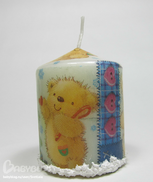 Верочка спасибо большое, а фитиль это я сделала отверстие в салфетке,вставила фитиль и утопила горячей ложкой:)