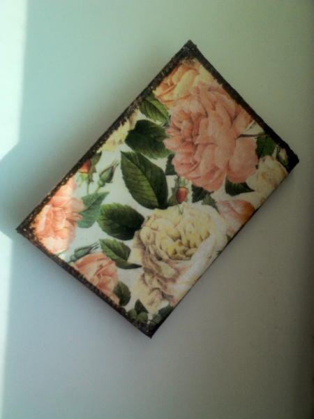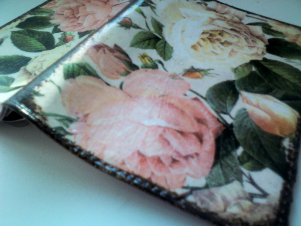 обложку ожезжили , немного пошкулила, чтобы краска лучше ложилась, опять обезжирила, прогрунтовла белым акрилом, просушила, немного сошкурила, наклеила файловым методом мотивы, покрыла клеем просушила, покрыла несколькими слоями лака просушила, пошкурила нанесла окантовку, покрыла еще 5 слоями лака, сушила в сложенном виде