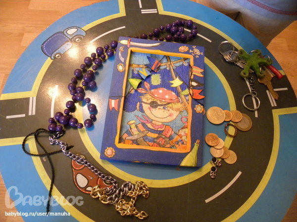 Это мой Пират! Вокруг картинки малая часть его добычи. Пока фотографировала, мой пират стоял рядом и охранял свои сокровища, потом всё спрятал в закрома.