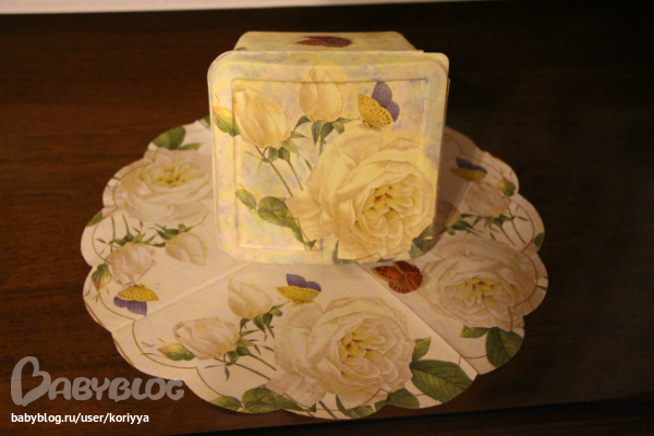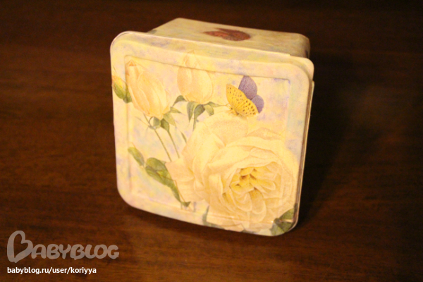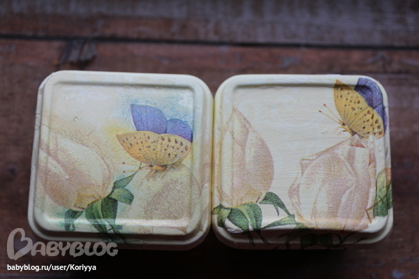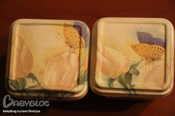 - вырвала из салфетки мотив - приклеила - покрыла его лаком