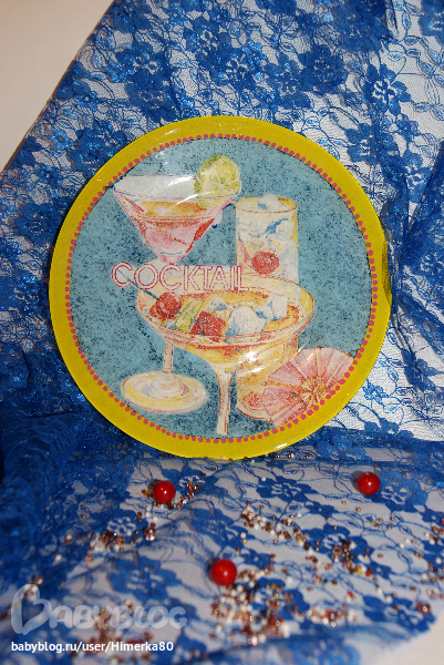 с обратной стороны прочпокала губкой и покрыла в 2 стоя акриловым лаком