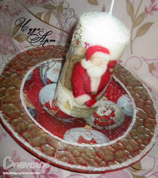 У меня такие же салфетки - также свечу делала - очень она мне нравиться, вот и тарелка меня сразила - надо будет остатки пустить на тарелку! Мужской набор понравился особенно рельеф - чем это?