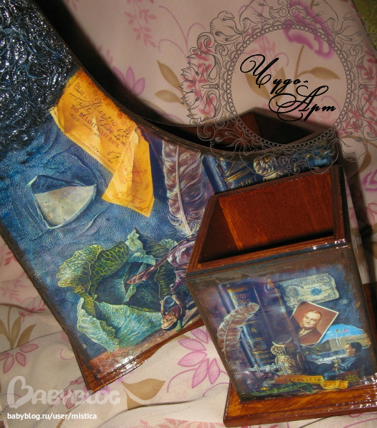Одна терелочка в технике прямого (светлая), а вторая (красная) обратного декупажа.