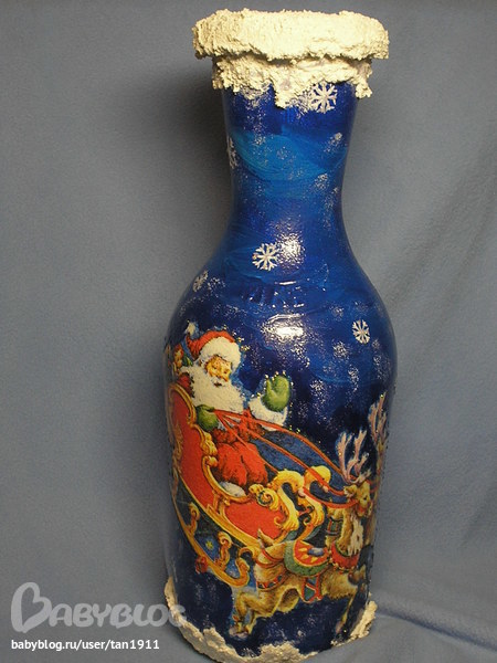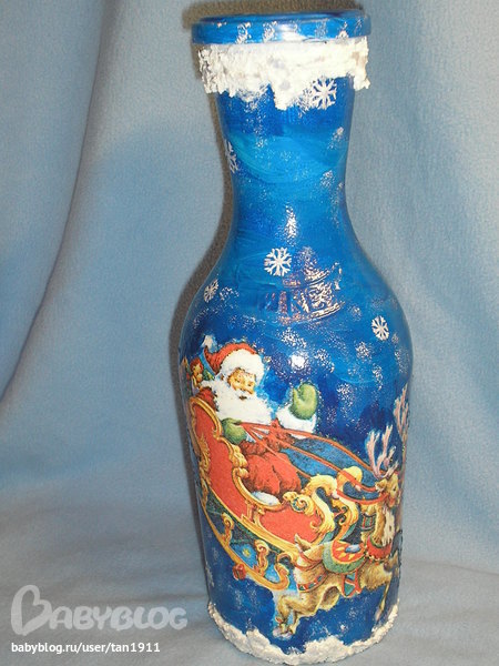 не доделала еще ... это у меня в выходные был всплеск активности .... и надо что то с фото делать в реальности бутылочка гараздо лучше смотриться .... блесток совсем не видно. Но клгда доделаю буду решать