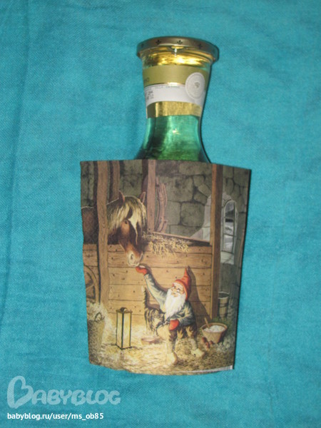 Посоветуйте! (обсуждаем черновые работы)Логично ли будет сделать крышу на горле у бутылки вот к этой салфетке? Извиняюсь за фото. Сделала на бегу можно сказать... И вообще удачная ли бутылка? Может с тонким горлом поискать?